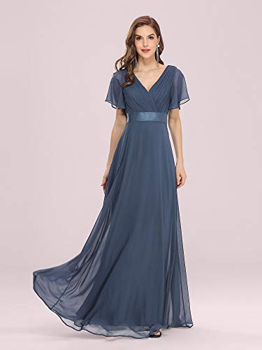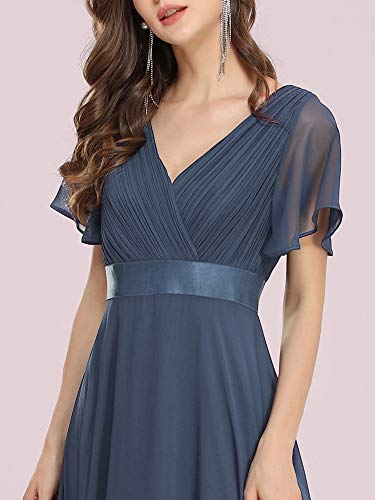 Ever-Pretty A-línea Vestido de Fiesta Cuello en V Manga Corta Gasa Corte Imperio para Mujer Armada Polvorienta 36