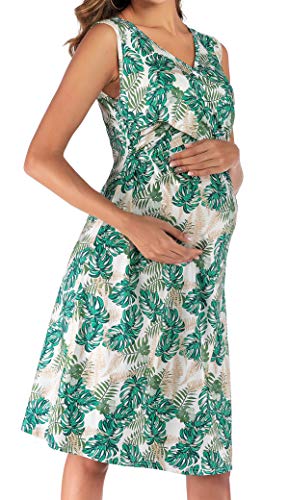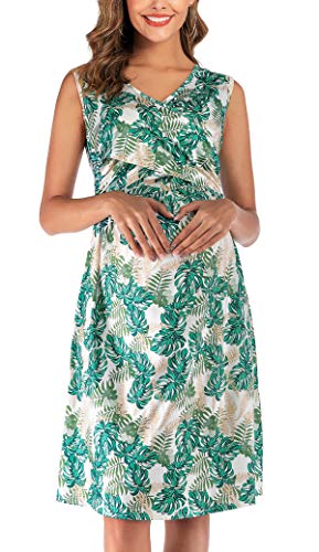 Maeau - Vestido Premamá de Lactancia Suave Vestido Mujer Embarazada Casual 2 Capas Cuello en V Verano Midi Vestido Maternidad Mujer sin Manga Vestir Dress para Hogar Fiesta Vacaciones - Verde