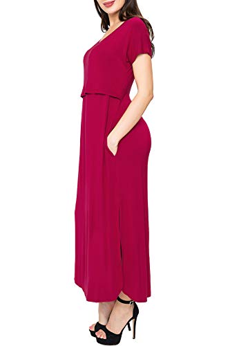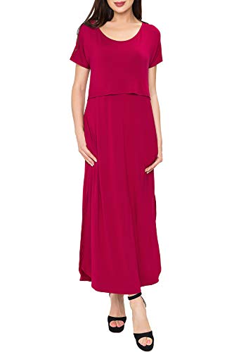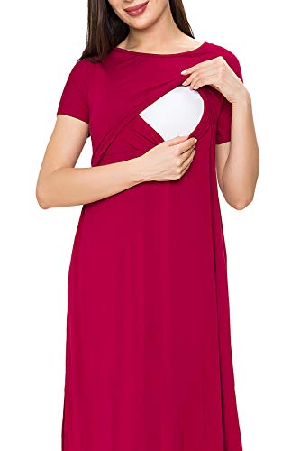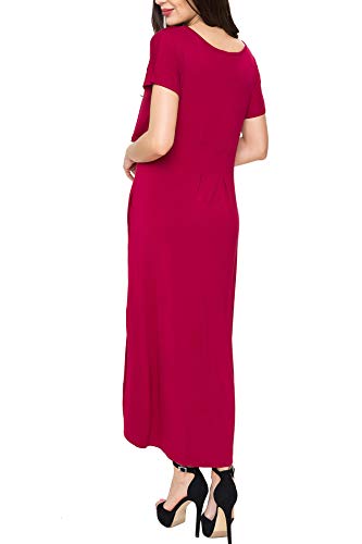 Smallshow Vestido Largo de Maternidad Mujer Ropa para Noche y Fiesta Elegante con Mangas Cortas Casual Wine XL
