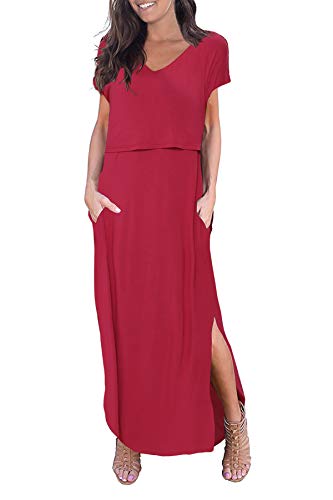 - El vestido largo casual con mangas cortas y es fácil para la lactancia materna. Cuenta con 2 bolsillos laterales, tipo de altura cintura y diseño de abertura de dos laterales.