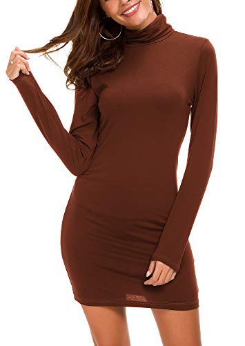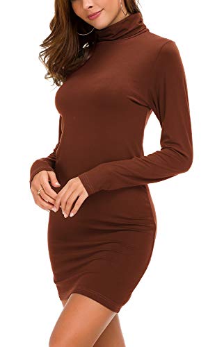 Vestido Ajustado de Manga Larga para Mujer Vestido Elegante de Cuello Alto con Cuello Alto (L, Caramel)