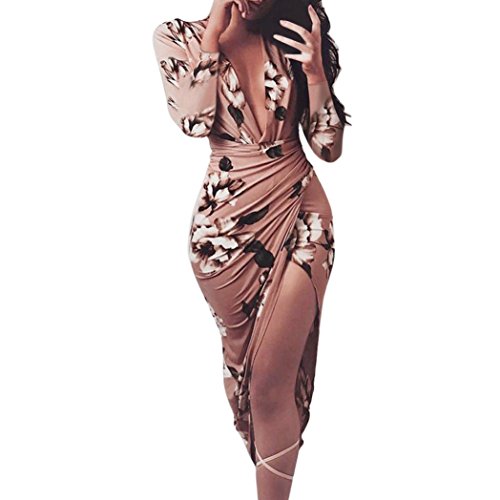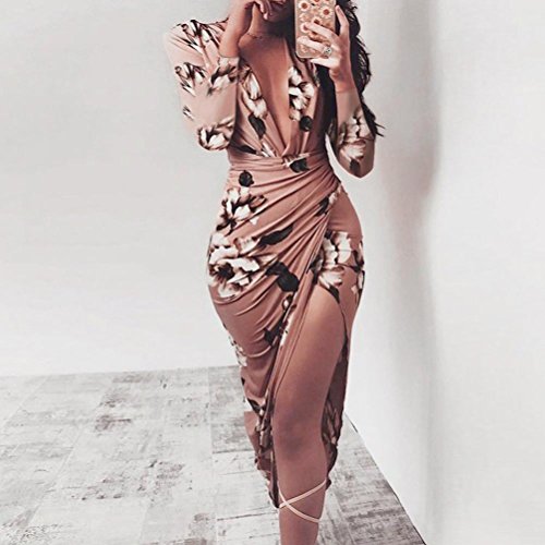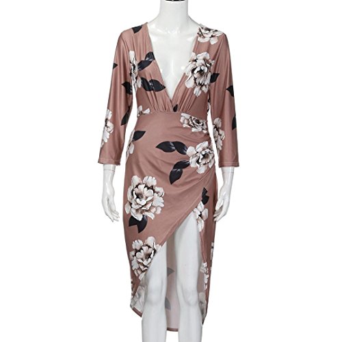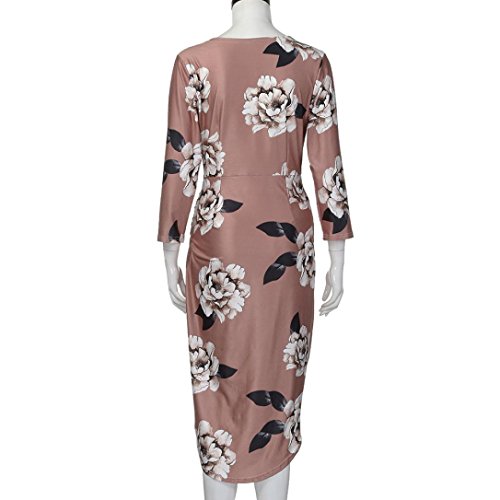 Overdose Vestido De Cuello Redondo con Cuello En V Bohemia De Manga Larga Estampado Floral Ocasional De Mujer OtoñO (XL, Marrón)