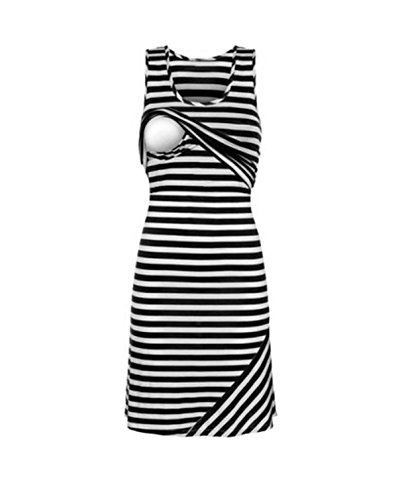 - Vestido clásico para lactancia: con cuello en V clásico, diseño envolvente para lactancia, cintura ajustable sin mangas.