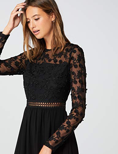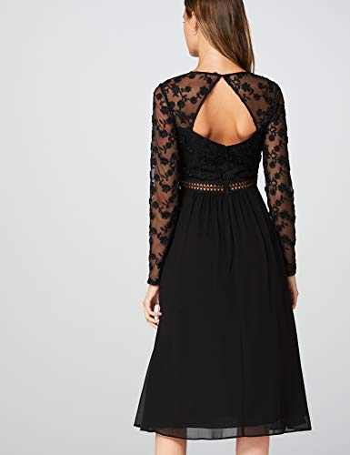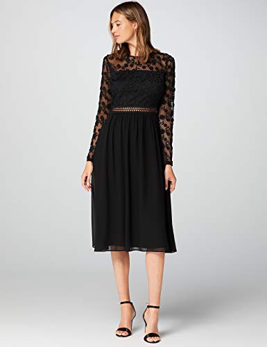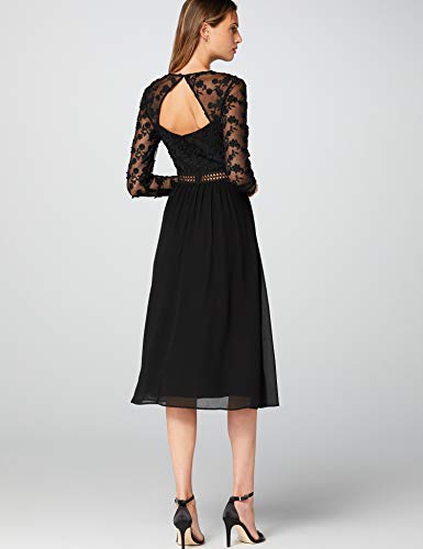 Marca Amazon - TRUTH & FABLE Vestido Midi Evasé de Encaje Mujer, Negro (Black), 40, Label: M