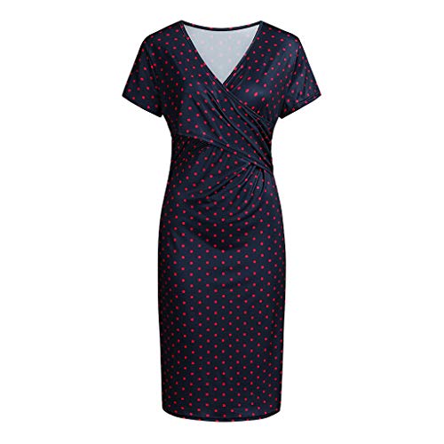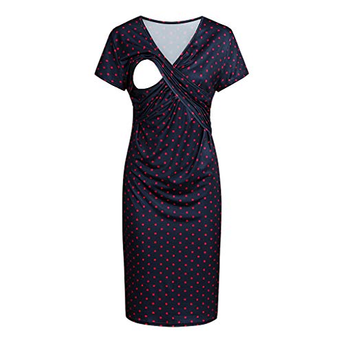 RISTHY Vestidos de Maternidad, Vestidos Mujer Verano de Enfermería para Mujeres Lunares Cuello V Vestido de Lactancia Mangas Cortas Ropa Premamá para Embarazadas