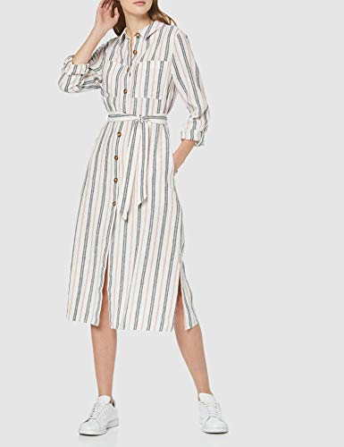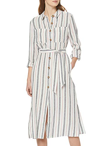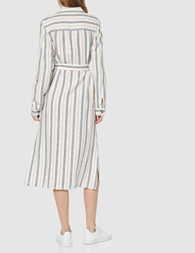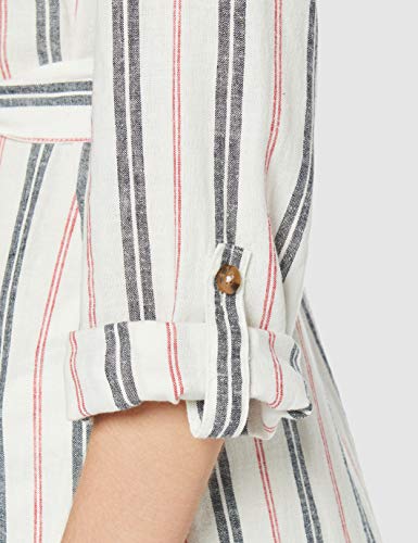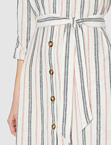 Marca Amazon - find. Vestido Midi Camisero de Lino Mujer, Multicolor (RED/ BLUE STRIPE), 40, Label: M