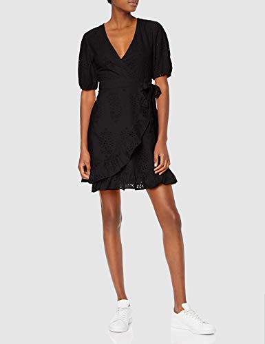 Marca Amazon - find. Vestido Corto Cruzado de Algodón Mujer, Negro (Black), 40, Label: M