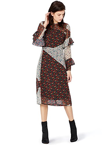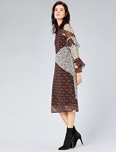 Marca Amazon - find. Vestido Midi de Gasa Mujer, Multicolor (Multi), 40, Label: M