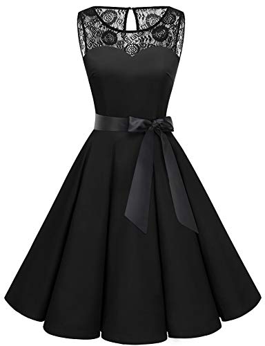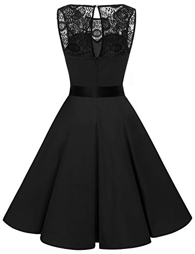 Bbonlinedress Vestido Corto Mujer Retro Años 50 Vintage Escote En Pico Black L