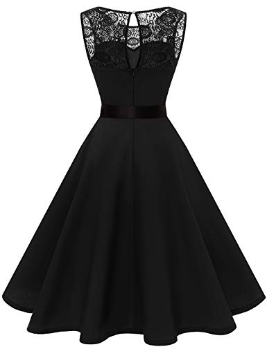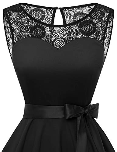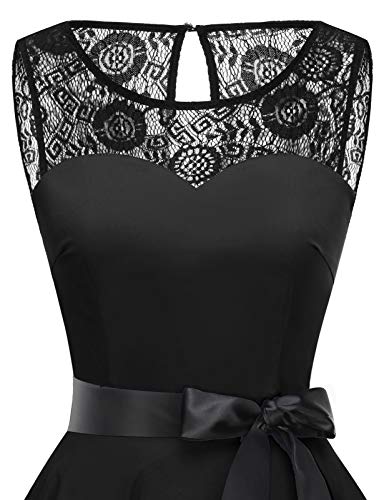 Bbonlinedress Vestido Mujer Corto Fiesta Boda Encaje Sin Mangas Black 2XL