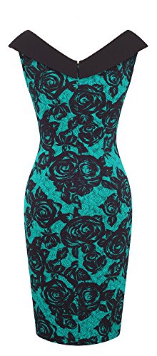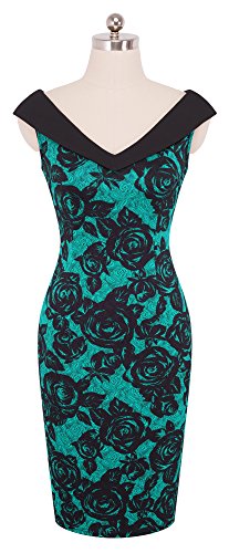 HOMEYEE Vestido de cóctel Floral sin Mangas con Cuello en V sin Mangas Vintage Rose B425 (EU 42 = Size XL, Verde)