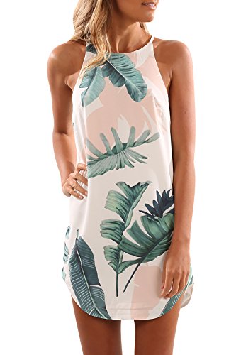 ISSHE Vestidos Cortos Verano Mujer Vestido Flores de Diario Corto Rectos Casuales Mini Vestidos Playeros Diarios Gasa Sin Mangas Sueltos Señora Vestido Playero Anchos Juveniles Suelto Hoja Blanca S