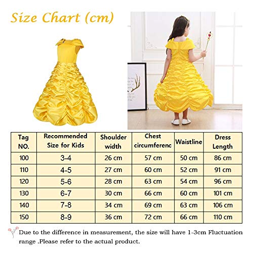 - ?【Tamaño adecuado】- Este disfraz de princesa tiene 6 tamaños para elegir para niñas de 3 a 10 años. Tabla de tamaño significa rangos de edad para la chica, pero son sólo para orientación general. ? Nota: los niños más altos y más fuertes de la misma edad deben elegir un tamaño más grande, pero los niños delgados deben elegir un tamaño más pequeño. Si tiene alguna pregunta, comuníquese con nosotros de inmediato.