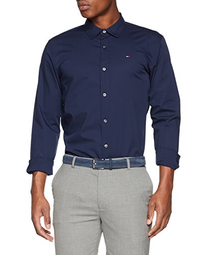 Tommy_Jeans Tjm Original Stretch Shirt, Camisa Hombre, Azul (Black Iris 002), Large