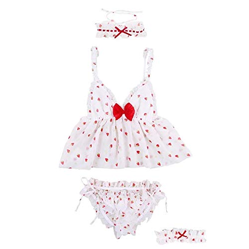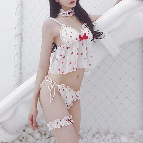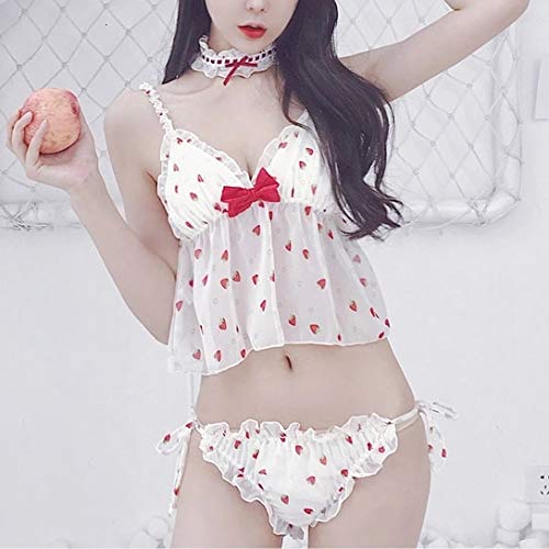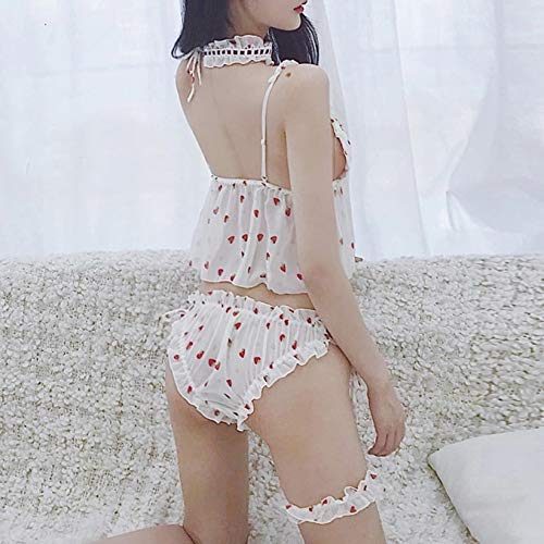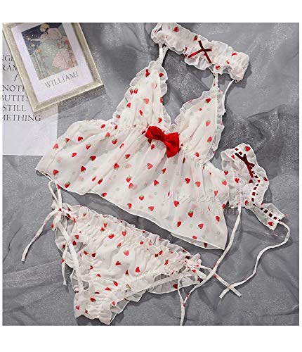 DSGTR Lencería Sexy de Mujer Babydoll de Encaje Pijama de Estilo Delantero Abierto Vestido con cinturón Princesa Conjunto de Pijamas Lindos lencería Femenina Pijamas con Lazo en V Profundo Japón