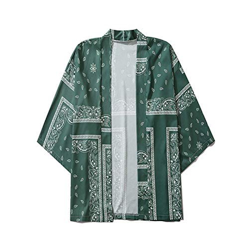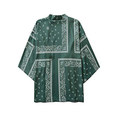 Kimono Cárdigan Hombre Abrigos Japones Estilo Yukata, Traje De Capa Informal Interior/Camisa De Moda para Parejas Masculinas Y Femeninas/Ropa Tradicional Japonesa,Green-Xlarge