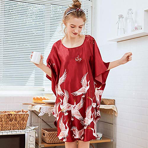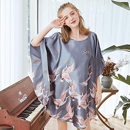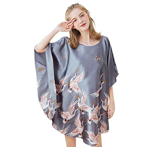 LYH Cárdigan con Estampado De Satén Sexy para Mujer Camisón Único Ropa De Dormir De Estilo Chino Femenino Ropa De Dormir Vestido De Túnica para El Hogar para Dormir para Mujeres, Gris, Talla Única