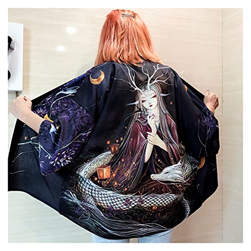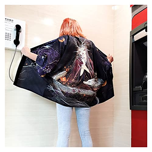 Mujeres Kimono Cardigan Yukata Femenino Streetwear Japonés Japón Camisa de Estilo Dragón Ropa de Dragón Kimono de Mujer Ropa Tradicional (Color : 1, Tamaño : One Size)