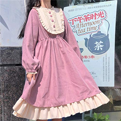 YUNCHENG Lolita Vestido Streetwear Shirt Femenino Estilo japonés Cuello Redondo Lolita Cintura Alta Adelgazante Contraste Color Relavado Vestido Sweet Lolita Vestido Kawaii Ropa (Color : Pink)