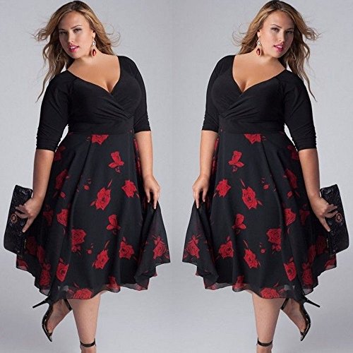 Tosonse Vestidos De Talla Grande Boho Swing para Mujer Vestido De Cóctel De Fiesta De Noche con Cuello En V Profundo