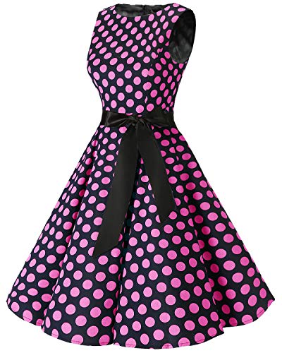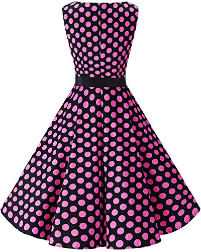 Bbonlinedress 50s Vestidos Vintage Retro Rockabilly Clásico Black Pink Big Dot 2XL
