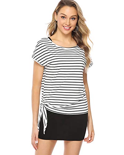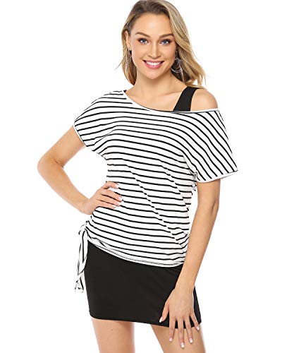 - Mini vestido de fiesta --- El vestido de lápiz está hecho de tela elástica y delgada, 95% poliéster calificado y 5% algodón, cómodo y favorecedor en todo tipo de cuerpo. Ajuste holgado, cuello redondo, estilo fuera del hombro, manga corta de murciélago, línea elástica inferior.