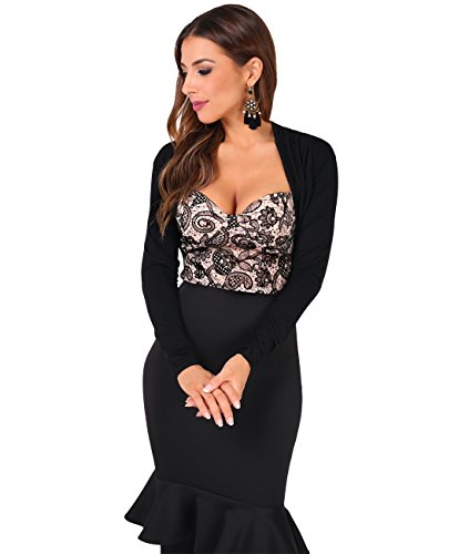 KRISP Bolero Mujer Fiesta Torera Manga Tallas Grandes Barato Punto Boda, Negro (7519), ML, 7519-BLK-ML