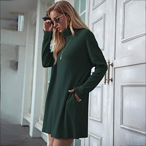 Overdose Vestidos Populares Beach Casual Mujeres Cuello Redondo SóLido De Manga Larga Slim Fit con Volantes Vestido Rojo