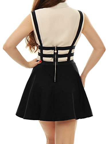 Allegra K Falda Mini con Tirantes Cintura Elástica Falda Acampanada Recortada Corte A-Línea para Mujer Negro XS