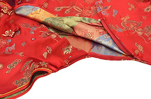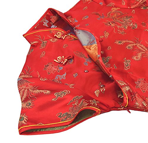 Vestido Chino Corta Rojo Cheongsam Mangas Cortas Qipao Motivo dragón tamaño 38
