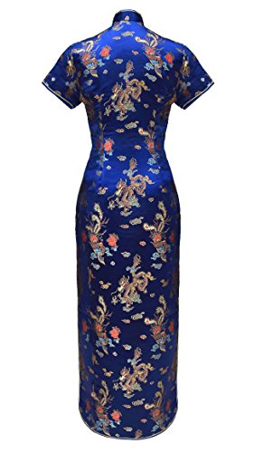 Vestido chino larga azul motivo dragón Qipao de cóctel vestido de noche con mangas cortas tamaño 38