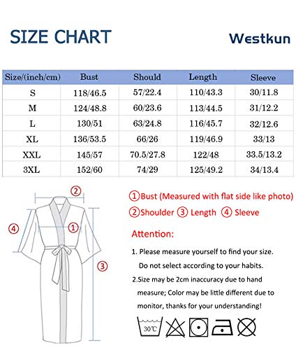 - 95% poliéster + 5% elastano, agradable para la piel; Esta bata larga de kimono está hecha de un satén grande y suave. Esta bata de noche es liviana y cómoda, brillante y suave al tacto, lujosa sensación y apariencia sedosa, pero asequible.