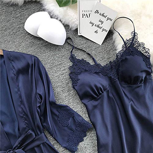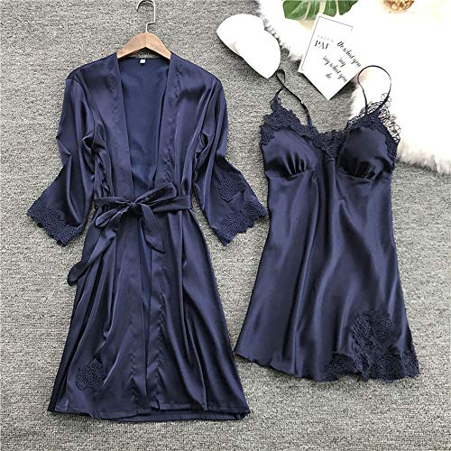 Ropa de Dormir para Mujeres,SHOBDW Regalo del día de San Valentín Babydolls Lencería Sexy Vestido de Seda Vestido de Bata Kimono Conjunto Tallas Grandes Ropa de Dormir 2PCS(Armada,3XL)