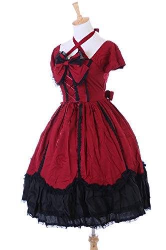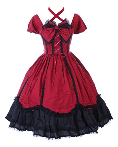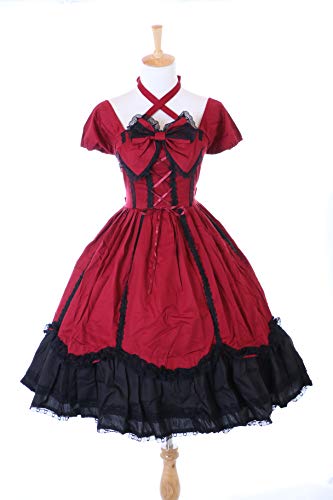 Kawaii-Story JL-624-7 - Vestido gótico Lolita de manga corta para cosplay (L-XL), color rojo y negro