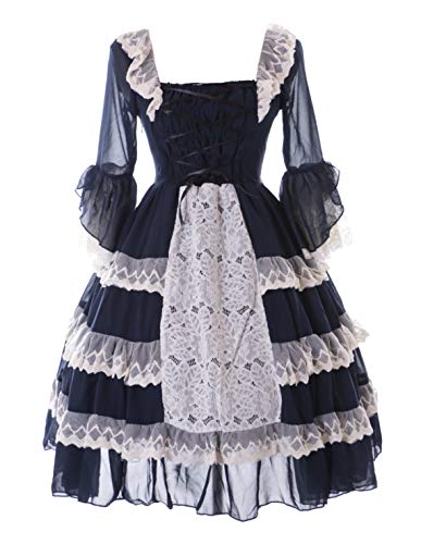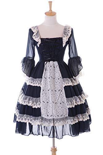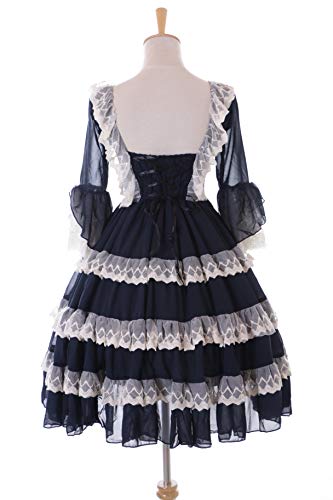 Kawaii-Story JL-701 - Vestido de gasa con volantes, estilo gótico Lolita de hada, manga 3/4, disfraz cosplay (L-XL)