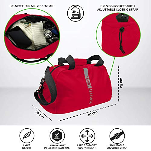 PERLETTI - Equipaje de Mano Hombre Mujer – Bolso Bandolera de Viaje Deporte Impermeable de Nylon - Zurrón Bolso de Hombro con Correa Regulable Ultraligero Suave - Ryanair EasyJet 40x20x25 cm (Rojo)