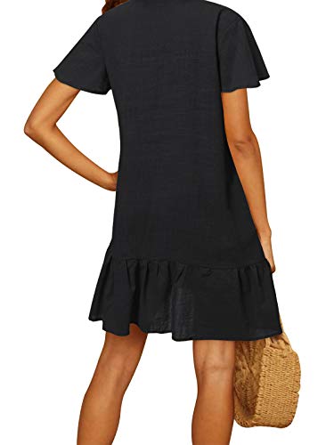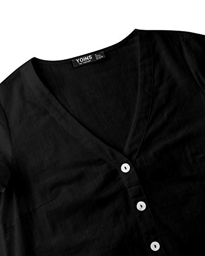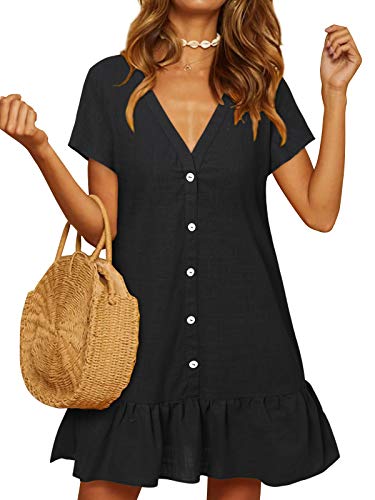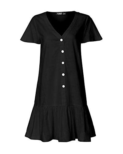 YOINS - Vestido de verano para mujer, manga corta, cuello de pico, cierre con botones, diseño tipo túnica