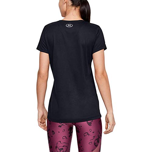 Under Armour Tech Short Sleeve V-Solid Camiseta, Mujer, Negro (Black/Metallic Silver), XL