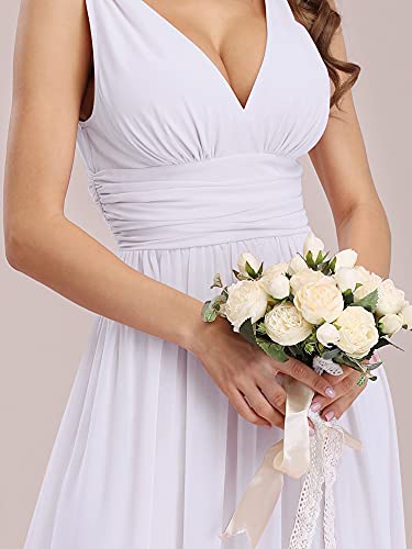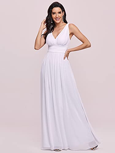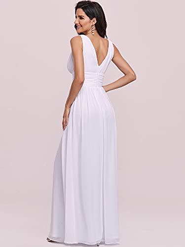 Ever-Pretty A-línea Largo Vestido de Novia Corte Imperio Cuello en V sin Mangas para Mujer Blanco 38