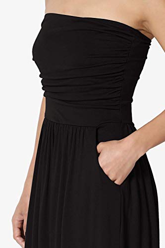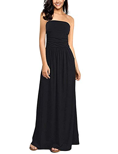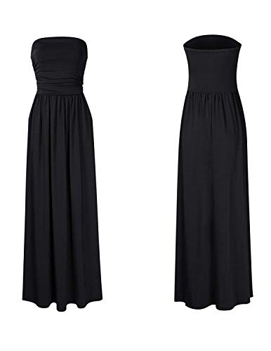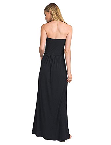 GHYUGR Mujer Casual Vestidos Largo de Playa Verano Fiesta Tubo Top Boho Floral Vestido Vacaciones con Bolsillo,Negro,XL