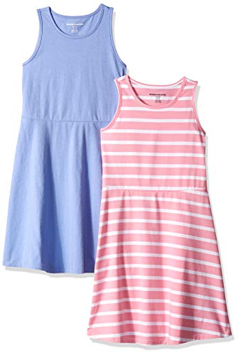 Amazon Essentials - Pack de 2 vestidos sin mangas para niña, púrpura, a rayas (Stripe/Purple), US S (EU 116 CM)
