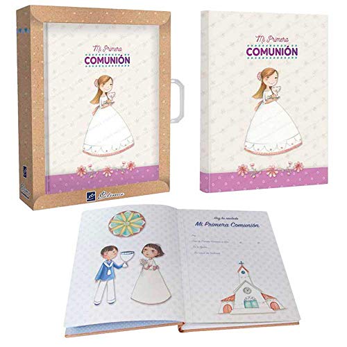 - Libro Primera Comunión, con maletín, para firmas y fotos. Tapa dura con nuevo acabado tacto seda y detalles en oro. Dispone de 60 páginas a todo color para firmas, fotos, recordatorios...