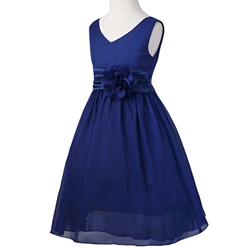 IEFIEL Vestido Fiesta Boda Niña Vestido Largo de Princesa con Flores Vestido Elegante de Dama de Honor Vestido Largo de Gasa para Cumpleaños Ceremonias Azul Oscuro 12 años