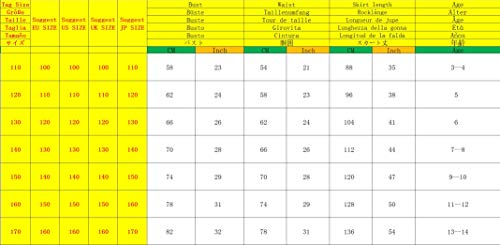 - La Tabla de Tallas significa el rango de edades de las niñas, sólo para las referencias generales. Para obtener el producto más adecuado, le recomendamos verificar la medición detallada antes de la compra