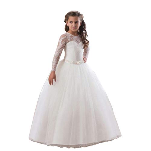 KINDOYO Vestido de Fiesta - Vestidos de Primera Comunión Vestidos de Encaje en Capas Vestidos Largos hasta la Dama de Honor para Niños,Blanco,EU 150cm=Tag 160cm