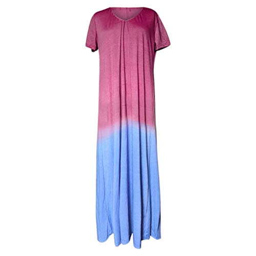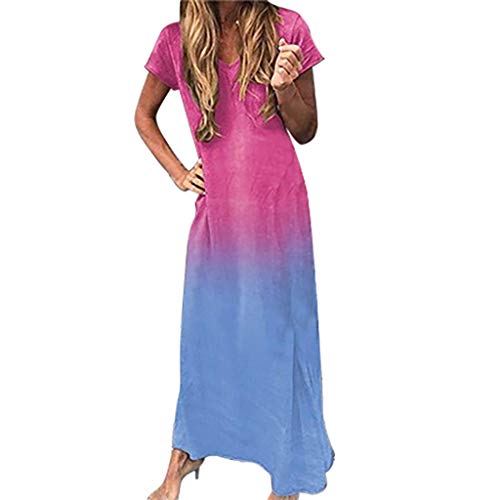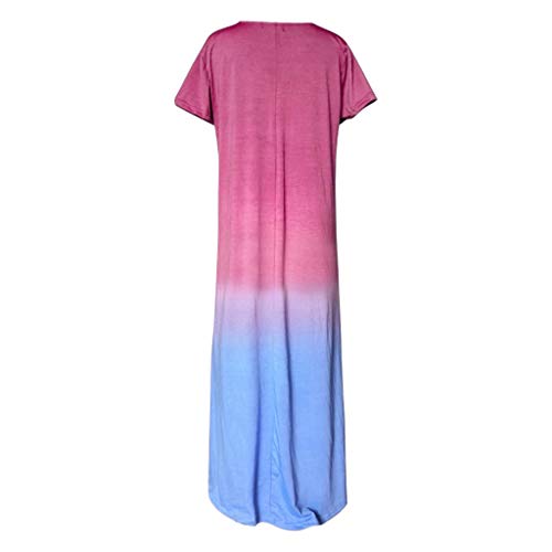 Vestido Diario De Estilo Largo De Verano, Vestido Informal De Cintura Corta con Cuello En V De Manga Corta para Mujer Falda Recta Suelta con Bloque De Color Degradado De TeñIdo Anudado