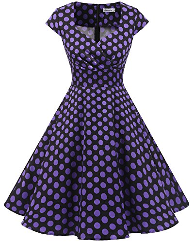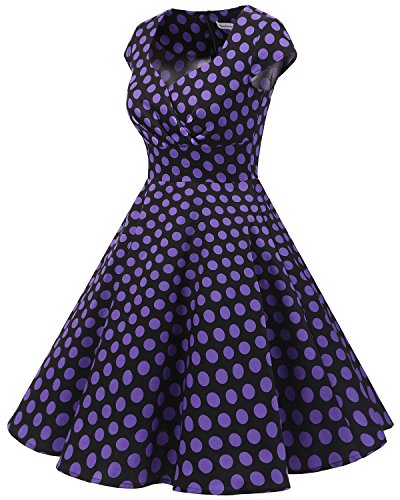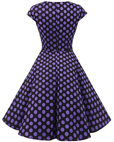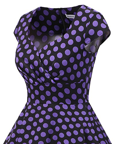 Bbonlinedress Vestido Corto Mujer Retro Años 50 Vintage Escote En Pico Black Purple BDot XL