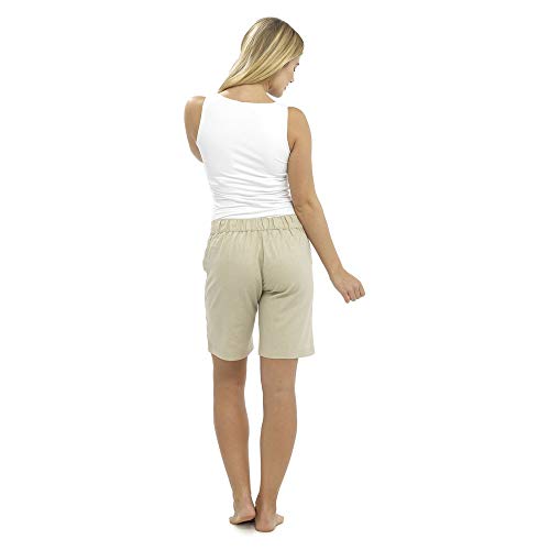 CityComfort Ladies Lino Pantalones Casual Holiday Elasticated Waist Womens Summer Pantalones Pantalones Cortos recortados con Bolsillos (22, Piedra Pantalones Cortos)