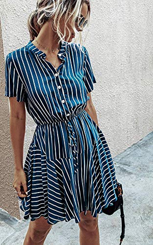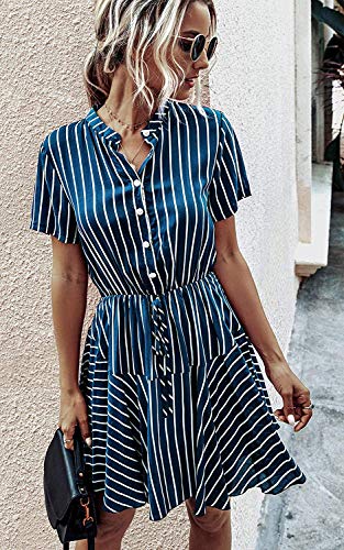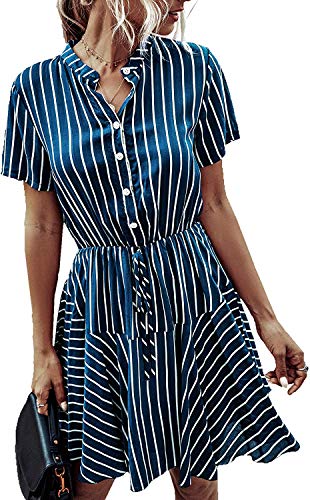 - 【CARACTERÍSTICAS DEL DISEÑO】 Una línea, mangas cortas, por encima de la rodilla, botón funcional (agrega moda y ayuda a usar o quitarse fácilmente), plisado, cintura elástica con cordón, estampado de animales o cuadros, patrón de rayas. Su hermoso diseño es un verdadero punto de atracción, que se ve bien en muchas ocasiones.