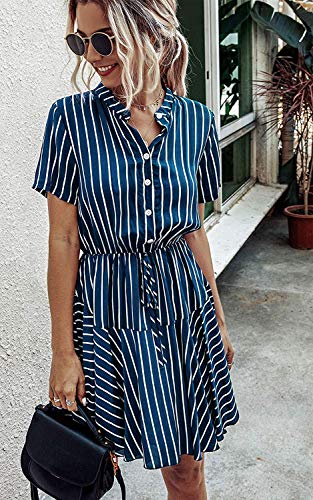 - 【EMPAREJA CON】 El vestido en una línea A favorecedora en combinación con el mini-largo tiene un efecto adelgazante, que evoca hermosas piernas. Simplemente puedes combinar el vestido camisero súper moderno con sandalias de tacón, botas cortas o tacones altos, collar, Brazaletes Y Embrague. Siempre te hará ver fantástico.